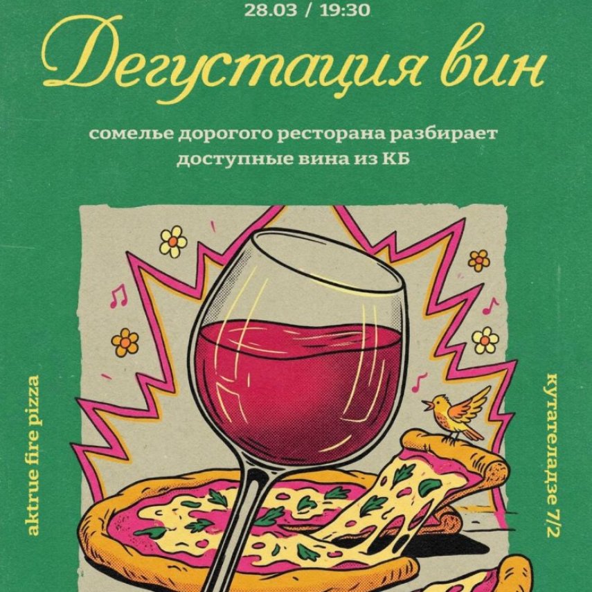 В программе — 4 вида вина: игристое, белое, розовое и красное. Сомелье расскажет, на что обращать внимание во вкусе, как читать аромат вина и какие закуски подходят к разным винам.
