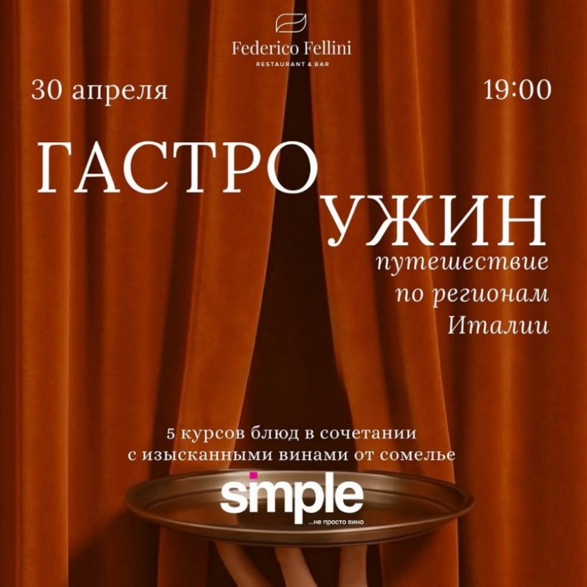 Гастроужин проведет Ермолаев Антон, бренд-Амбассадор Simple group в Сибири, член российской ассоциации сомелье, преподавателя винной школы Энотрия.