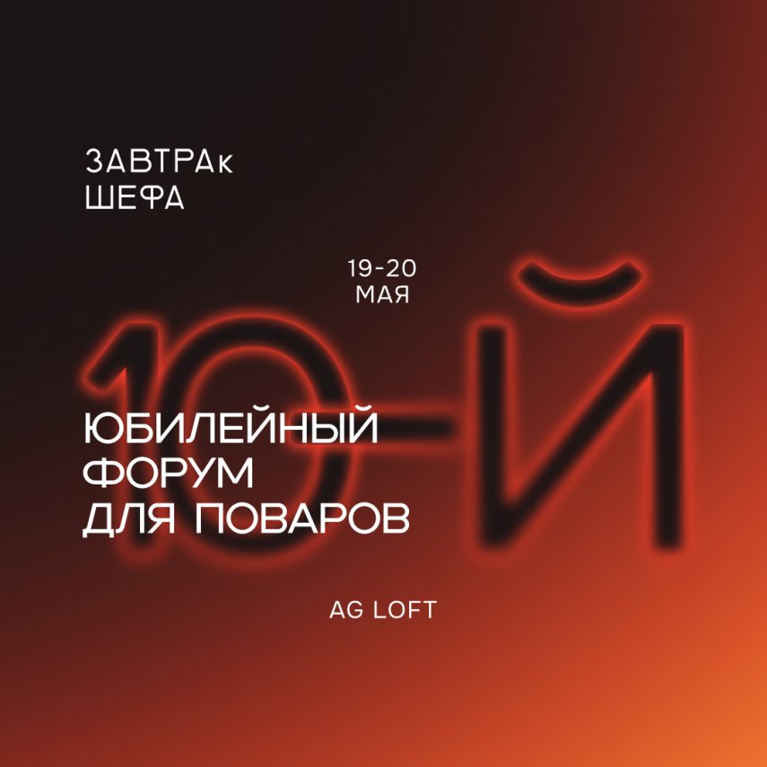 19–20 мая 2026 года в пространстве AG Loft пройдет юбилейный, 10-й форум «ЗАВТРАк ШЕФА». Это будет настоящий профессиональный день рождения: тепло, душевно и с пользой.