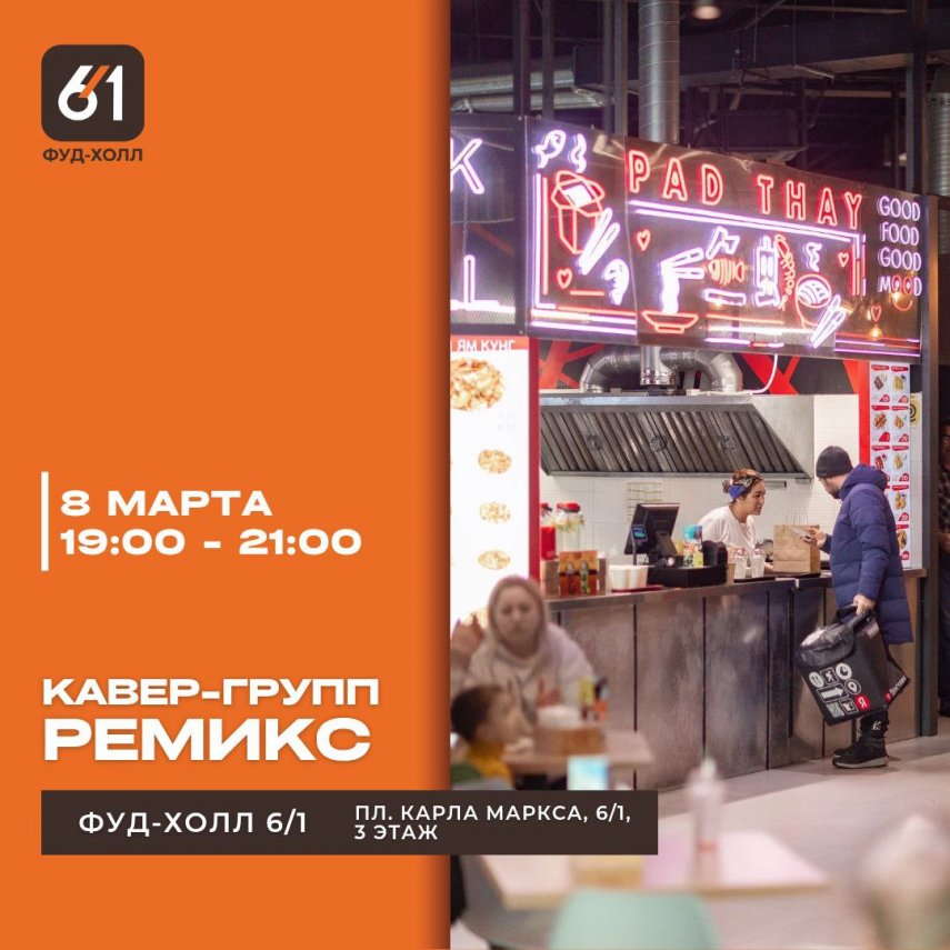 Фуд-холл 6/1 объединяет гастрономию и события: днём сюда приходят на обед, вечером — на концерты и встречи.
