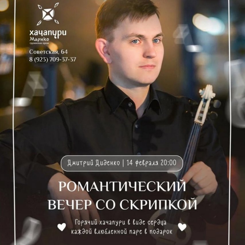 Тёплый свет, любимые блюда, музыка, которая касается сердца… и хачапури в виде сердца – в подарок каждой влюблённой паре.