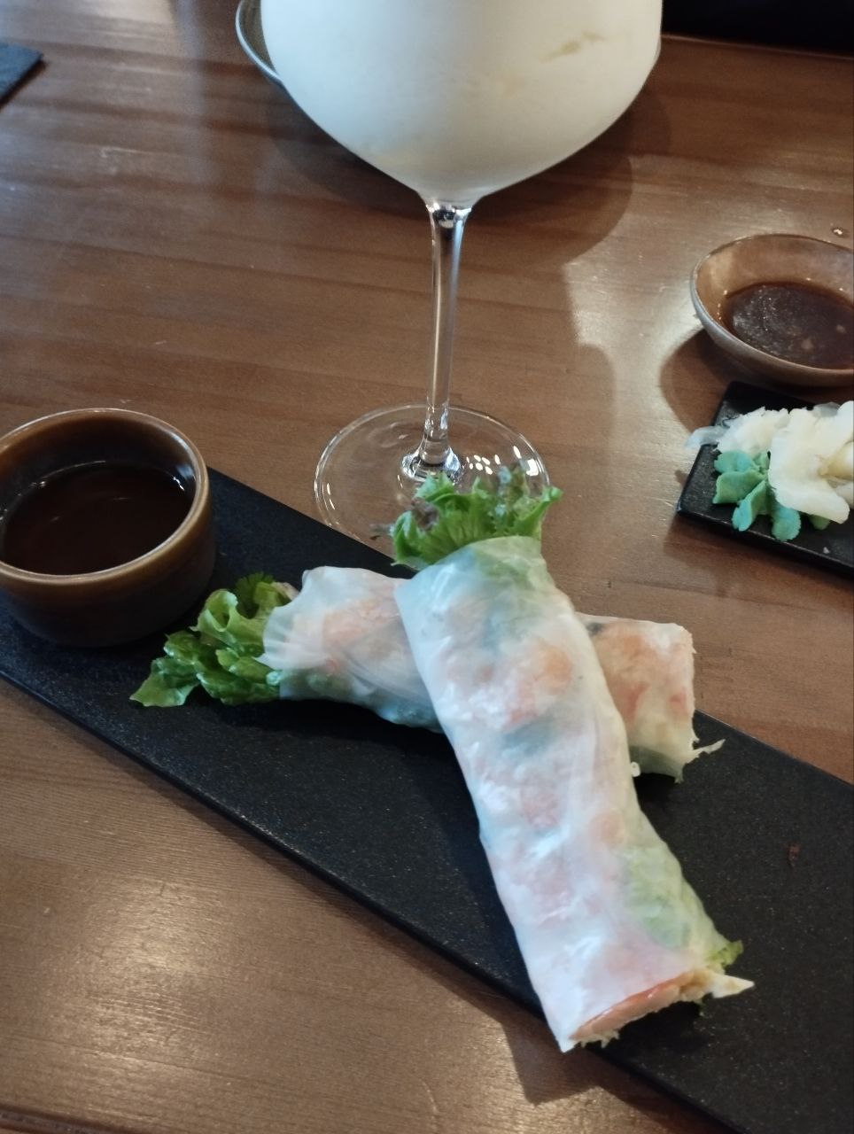 Рекомендую: Спринг ролл с креветкой. Вкусное блюдо. Всё гармонично оказалось в нём: эстетика подачи и вкус. Когда бываю здесь, заказываю как закуску к какому-то ещё блюду. 550₽
