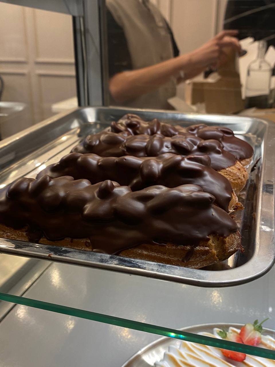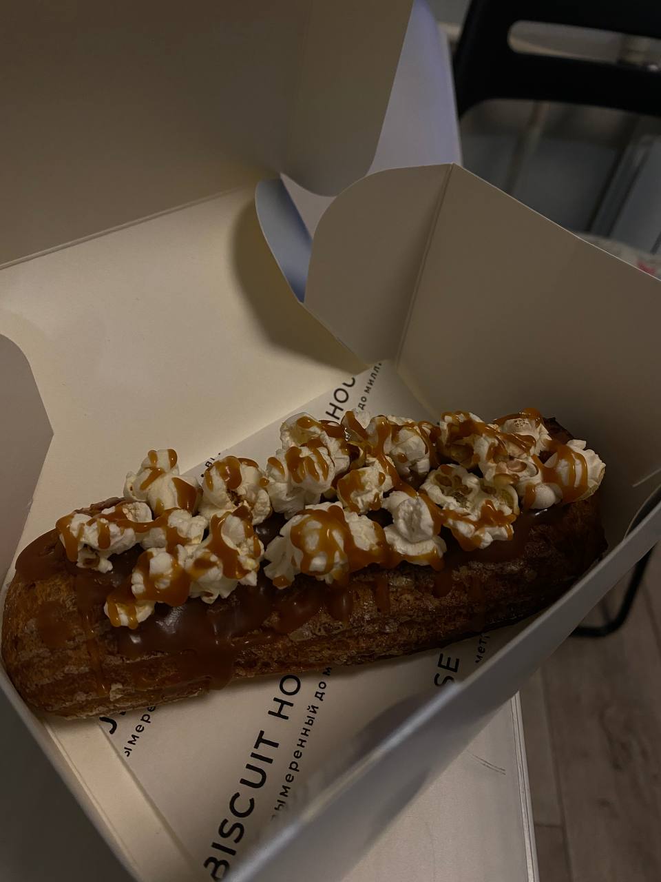 В последний раз брала эклер с соленой карамелью и поп-корном (350 рублей) и это ну ооооочень вкусно! На фото этот красавчик! Так же есть особенные десерты на тематические праздники: 14 февраля, 23 февраля, 8 марта. Все десерты всегда вкусные и свежие. Из напитков брала какао и он тоже оправдал мои ожидания!