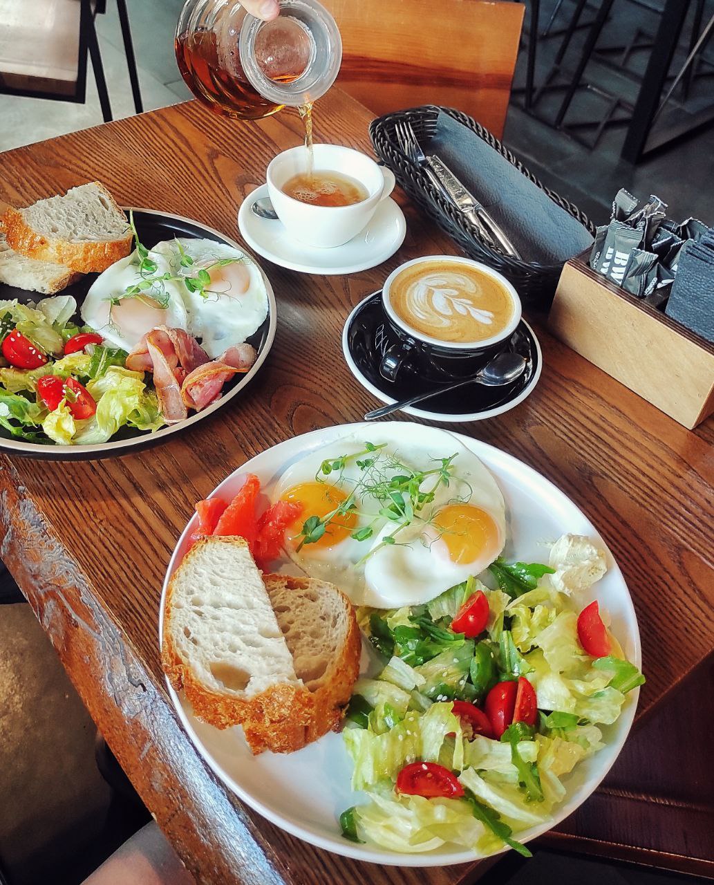 Очень люблю завтраки в Blackwood coffee roastery. Ничего необычного, скажете вы. Возможно. Но завтраки здесь очень вкусные и недорогие. За 360 рублей вы получите яйцо в виде скрэмбла или яичницы, салат, бекон или лосось к ней. Чай или кофе на выбор. А кофе в Blackwood вообще великолепный.
