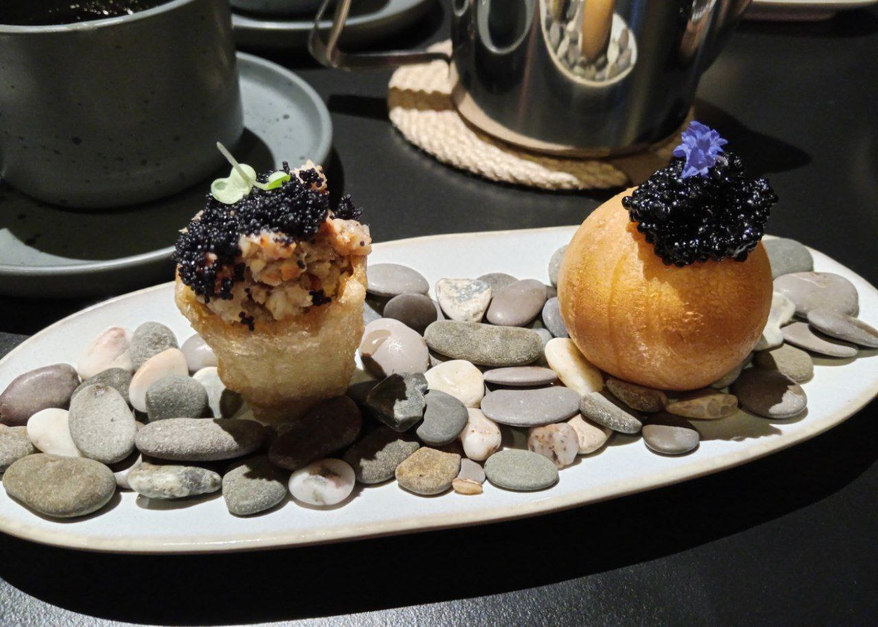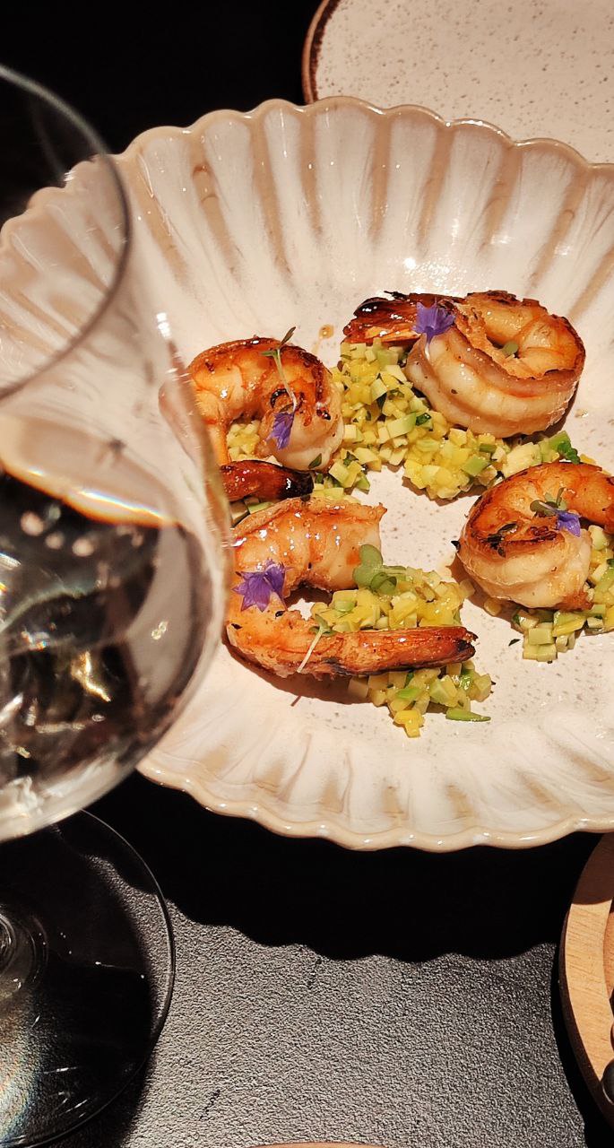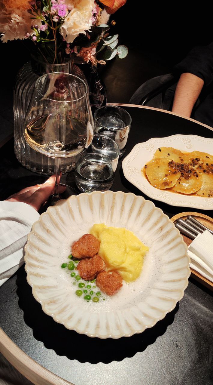 Большое меню, так как ещё коллаба с соседним Nuts - есть из чего выбрать, если позиции в наличии. Акцент на морепродуктах и Азии. Прекрасная атмосфера, чудесное обслуживание. Еда очень вкусная. Подача быстрая. Гребешки с пюре выглядят очень обычно, но прекрасно приготовлены. Равиоли с уткой чудесны, немножко грибов было очень в тему. Авторская Филадельфия вкусная, но ожидалось чего-то более авторского) креветки с тартаром из авокадо и манго - лучшее блюдо вечера с яркими вкусами и сочетаниями. Поздравили десертом, очень воздушный и фруктовый. Прям тропики.