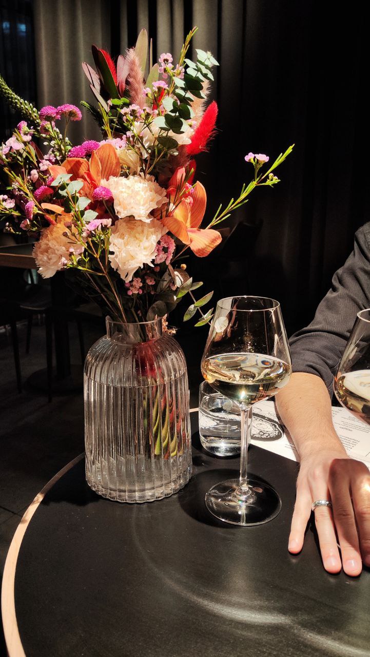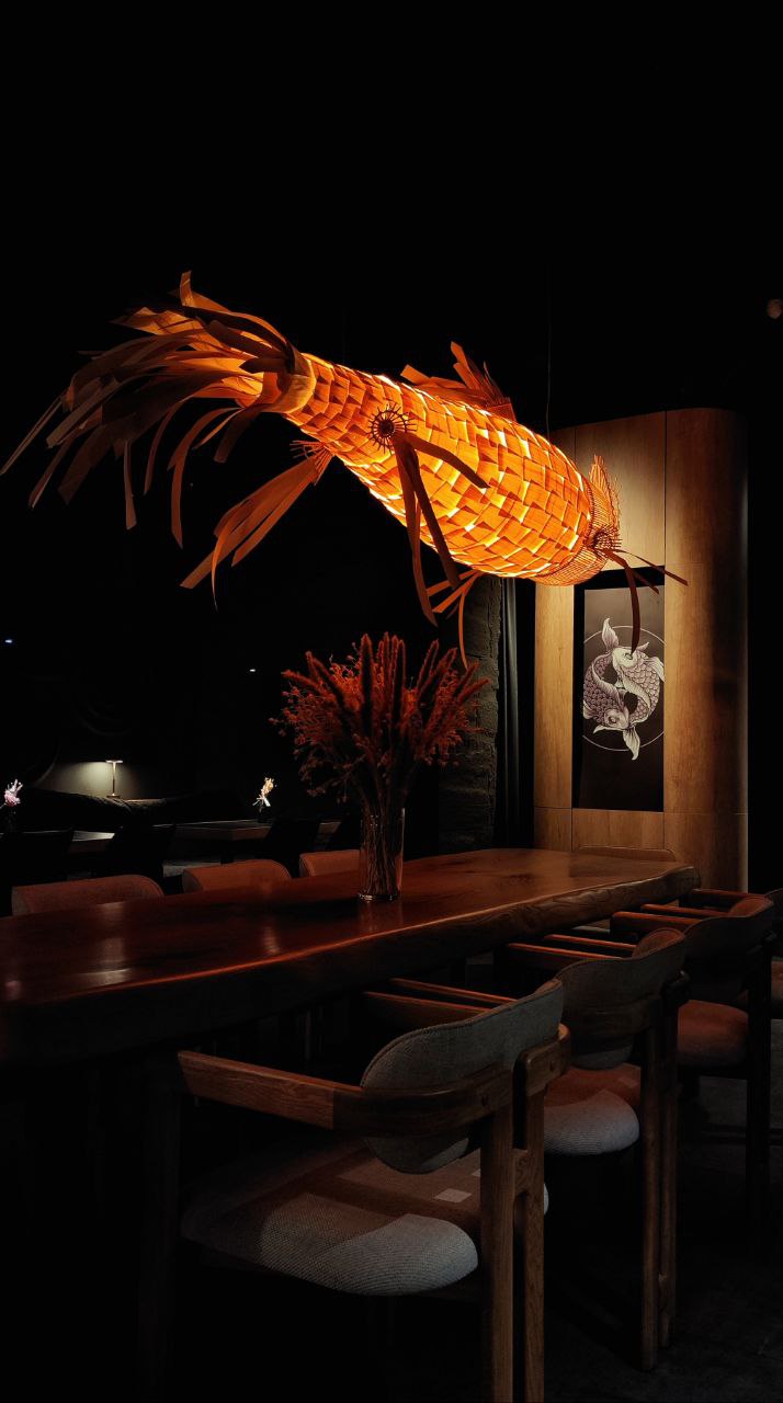 Сочетание Азии и Европы с акцентом на вино. Место для вечерних встреч или посиделок после работы с бокалом вина и разнообразными закусками в спокойной обстановке при приглушенном свете.