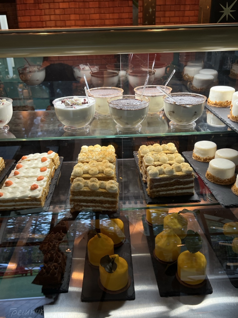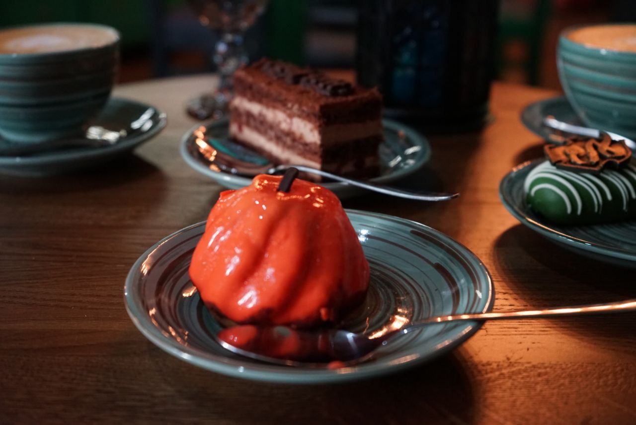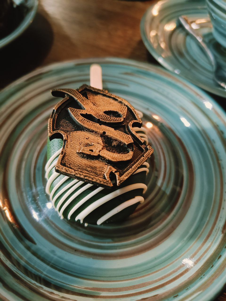 Мы ездили вдвоем и остались в полном восторге от десерта в форме тыквы! Неприторное, нежное, внутри массовый крем и кусочки нежной тыквы. Так же очень понравилась "картошка", так же стилизованная под логотипы факультетов.Фото прилагаю и от души рекомендую.