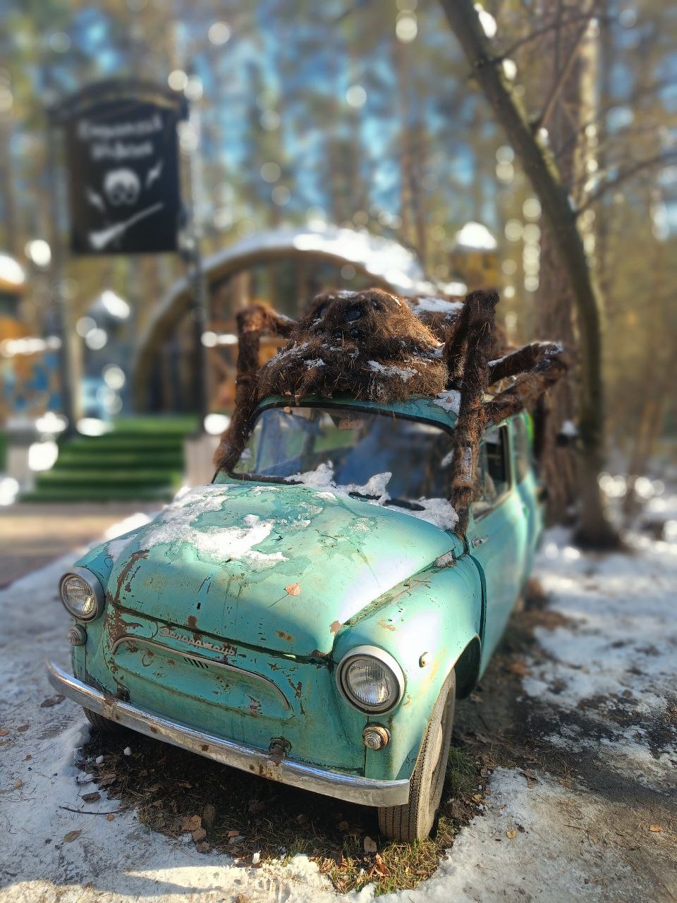 Волшебное место. По самой территории бегают кролики, зона входа в кофейню выдержана в стилистике вселенной ГП (живые шахматы, фордик Уизли, огромный паук Арагог).