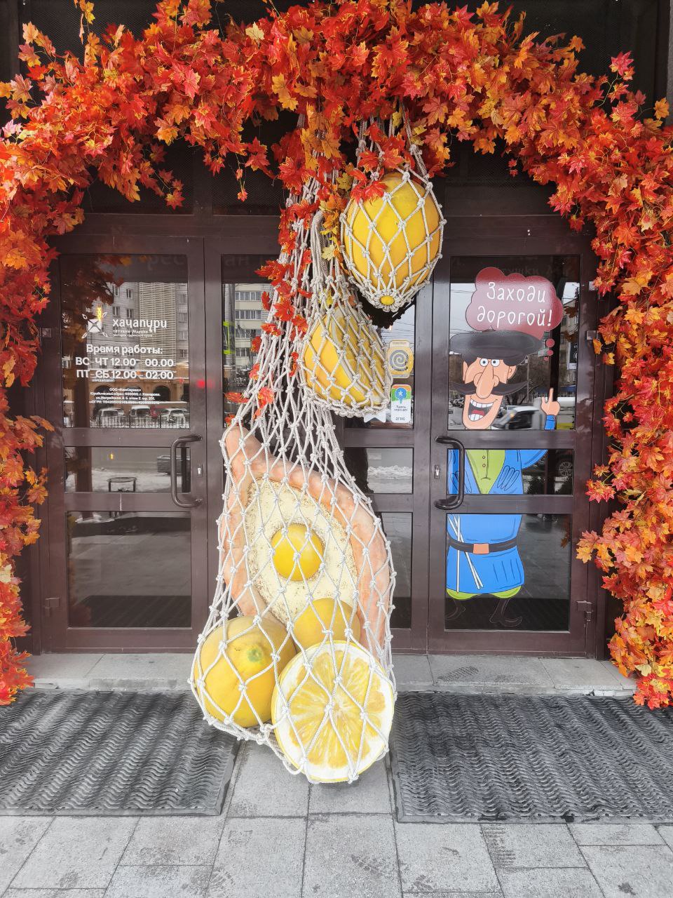 Помпезность ждёт уже на входе) И она продолжается за столиком: первым комплиментом является вино (красное/белое - на выбор). Интерьер внутри уже как у любого современного ресторана: полумрак, много растений, винные бутылки как декор. В туалетах коллаборации с брендом косметики: если получится развилось мыло или крем, есть qr-код для оформления заказа)