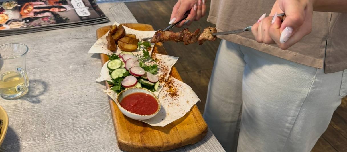 - Шашлык - эффектная подача, если попросить, тебе его снимут щипцами
