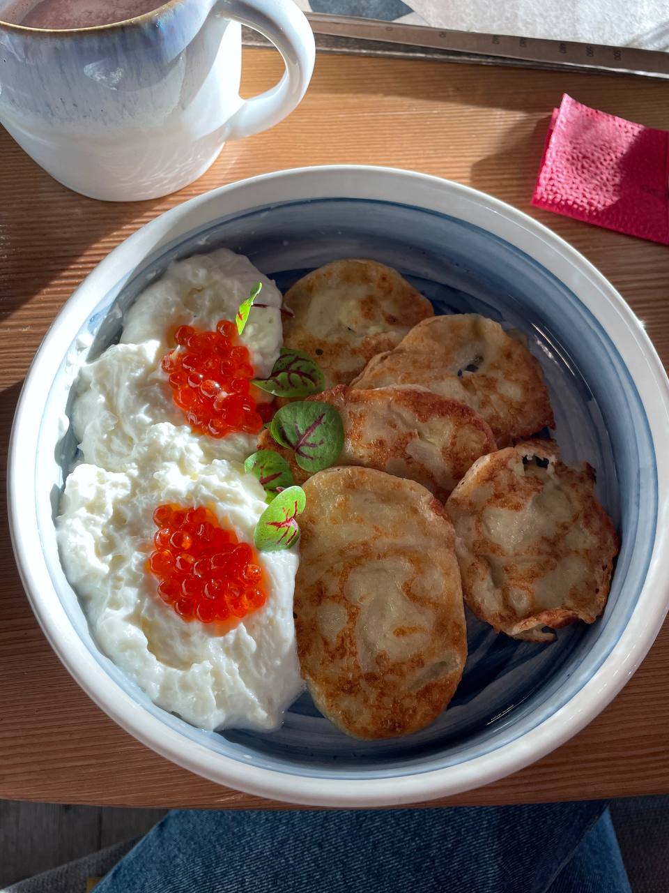 Рекомендую: Картофельные оладьи с сырным кремом и красной икрой - 530р.