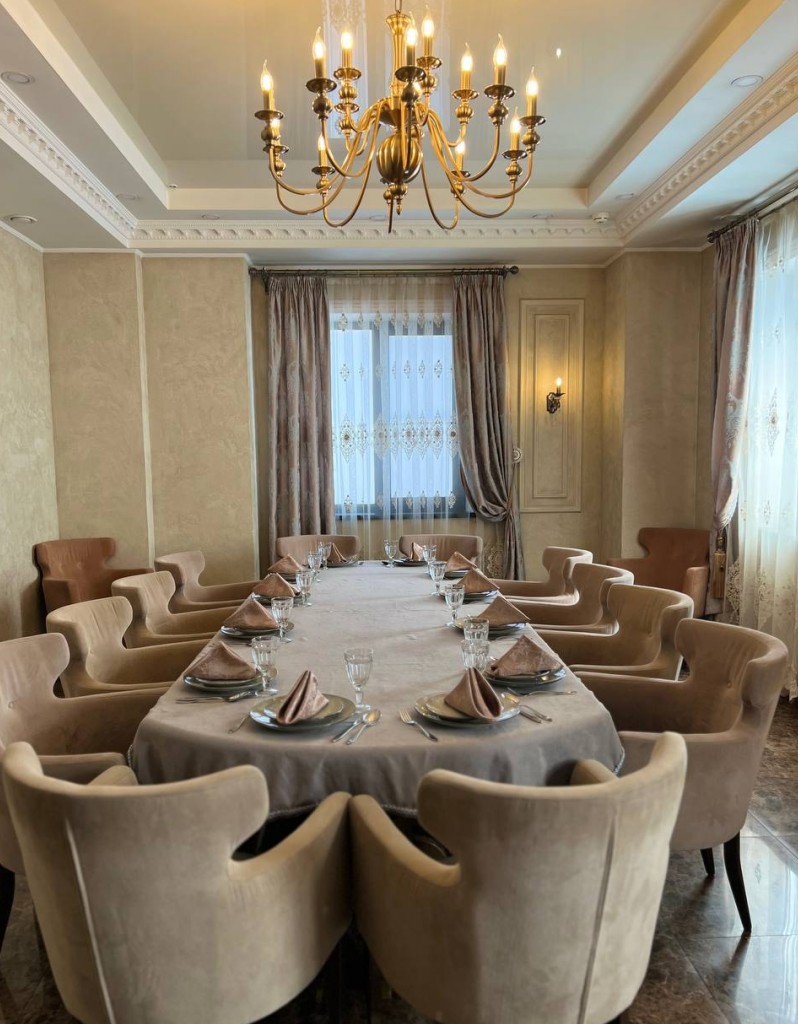 Основной зал - до 55 гостей, VIP-зал - до 18 гостей, 2 малых зала - до 15 каждый каждый, 2 VIP-комнаты - до 10 гостей каждая.