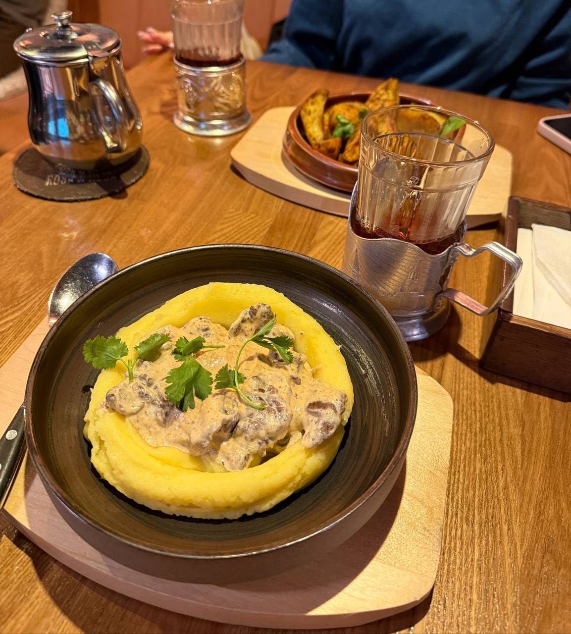 А главное, эффектное поздравление на день рождения - большая группа официантов делает почетный круг по ресторану, на фоне играет песня и все хлопают. Далее подходят с «волшебным рогом» (напиток в подарок) к имениннику и радушно поздравляют с аплодисментами. Молодцы! Я считаю это надо видеть вживую.
