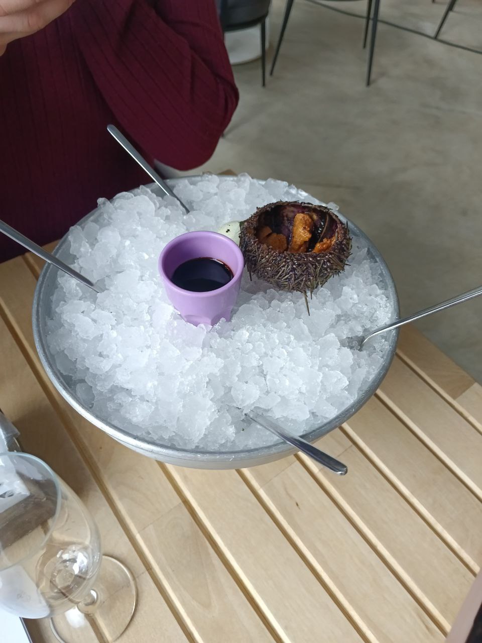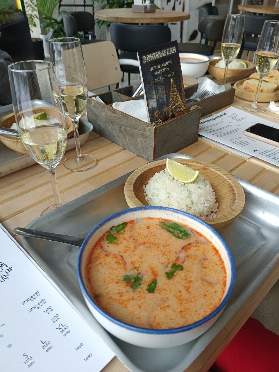 Ходила с подружками в заведение: Крабы. Девочка официант, предложила сфотографировать нас. (Это не так часто бывает, обычно если только попросить). Мы воспользовались новогодней акцией: похмельный Том Ям и Велком Игристое. Порция большая и достаточно сытная, морепродукты присутствовали. Попробовали морского ежа (официант тоже предупредила, что блюдо на любителя). Понравилась внимательность и общение с официанткой.