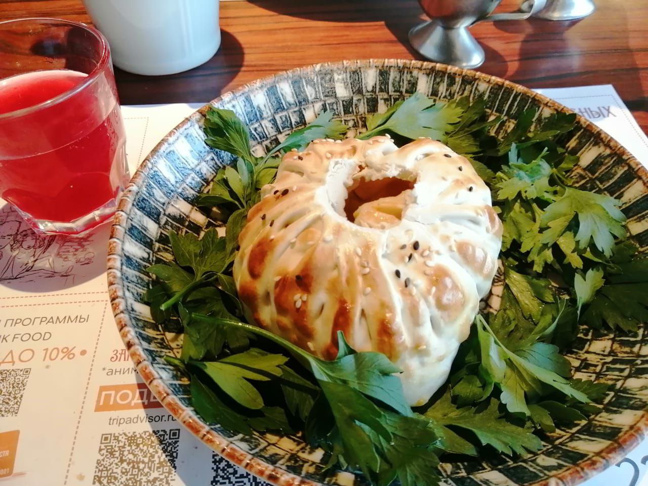 Отличное, уютное заведение. Атмосфера классная, блюда очень вкусные, хороший персонал. Плов, чебуреки, хачапури. На фото мое любимое блюдо - Орсули со снежным крабом и креветкой - это большое, запечённое в печи хинкали, внутри которого спрятались 5 хинкали-малышей.Подается с соусом Том-ям (490 р). Да, придется подождать 40 минут, но поверьте, оно того стоит.