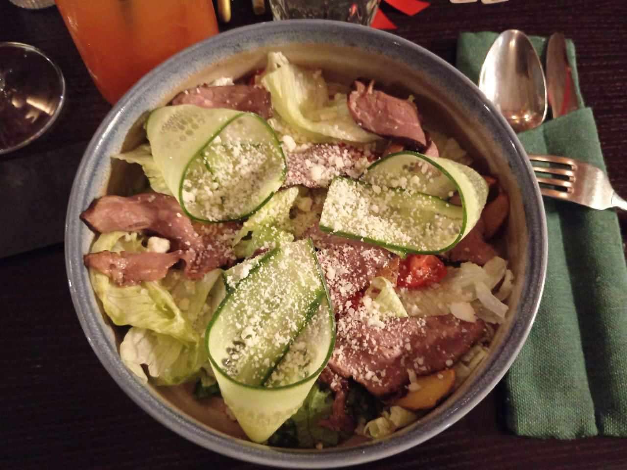 Рекомендую ресторан-бар Мэй би рислинг: все блюда, которые пробовали, очень вкусные, и везде красивая подача. Например, салат с ростбифом и картофелем. Мясо потрясающе приготовлено. Обязательно повторим.