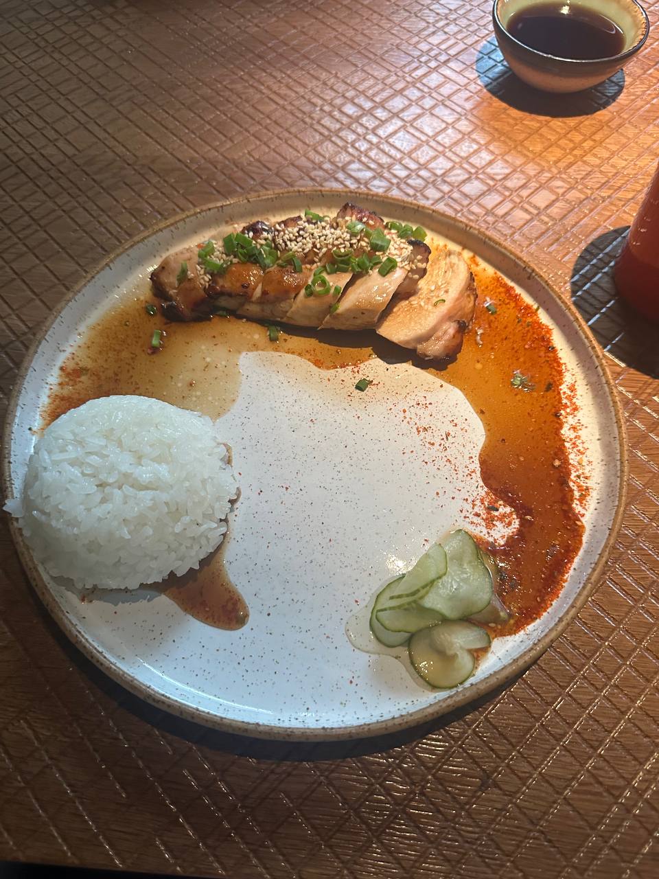 Цыпленок терияки из основного меню Poke Top за 590 руб. Сочный, нежный. Понравилось ненавязчивые обслуживание и романтичный полумрак.