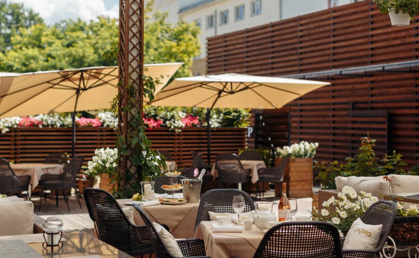 Веранда Премьеры — это тихий и спокойный оазис в самом сердце города, изящно спрятанный от шумных улиц.
