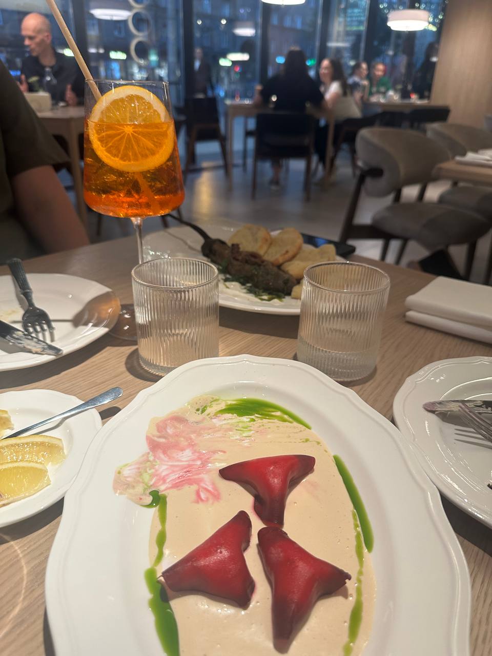 Понравились свекольные равиоли с творожным кремом и сливочно-ванильная пана котта в «Счастье тутто». Десерт не сфотографировала, но подается он в большой овальной тарелке и на вкус божественно.