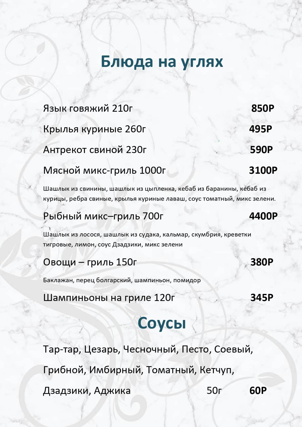 - ср. чек (без алкоголя) – от 2000 руб./чел. Сервисный сбор: 10%