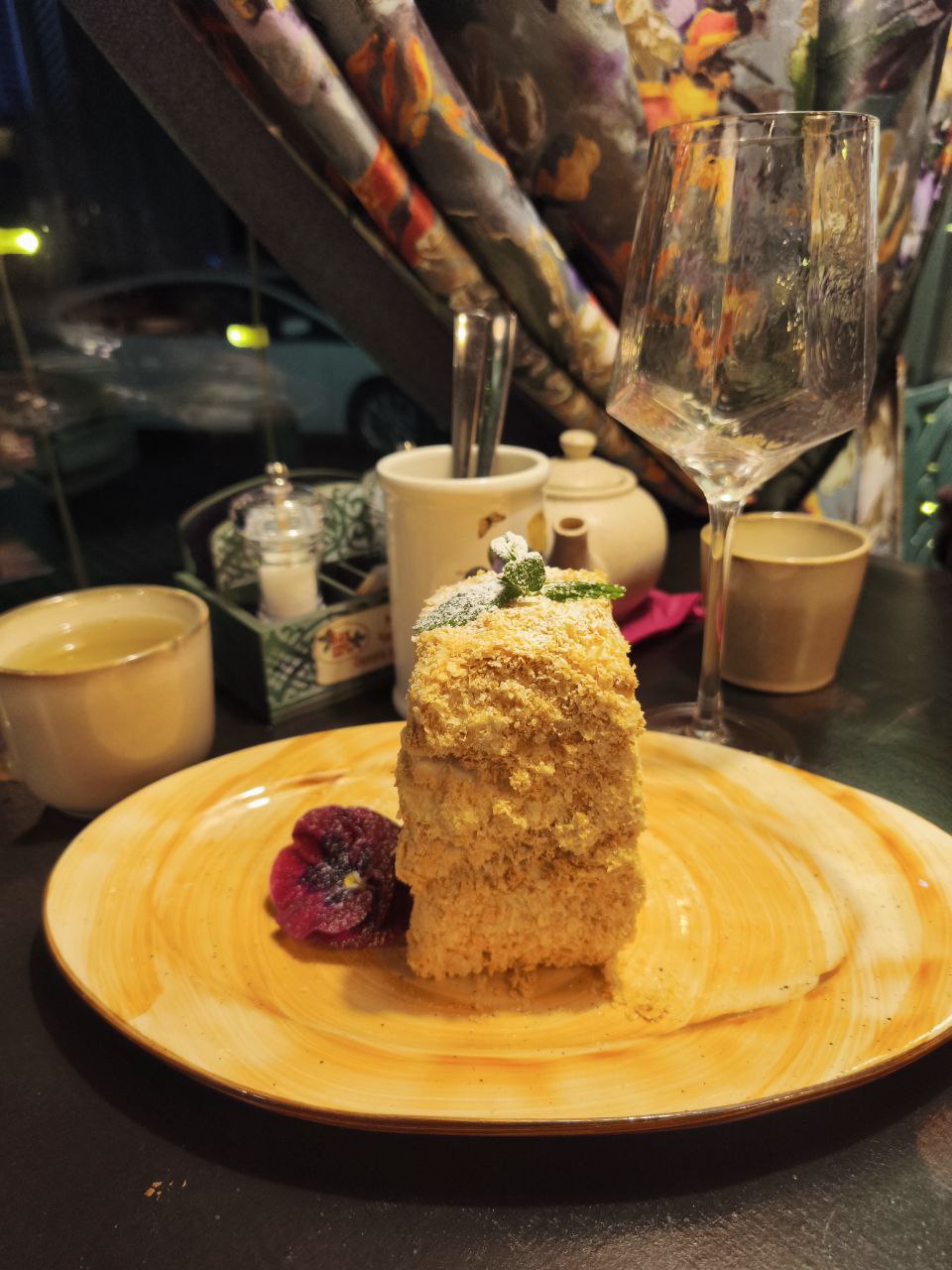 Интересная подача блюд в меню. Меня подкупил Наполеон, "высокий, как твоя самооценка". Пирожное действительно высокое, но моя самооценка чуть пониже!