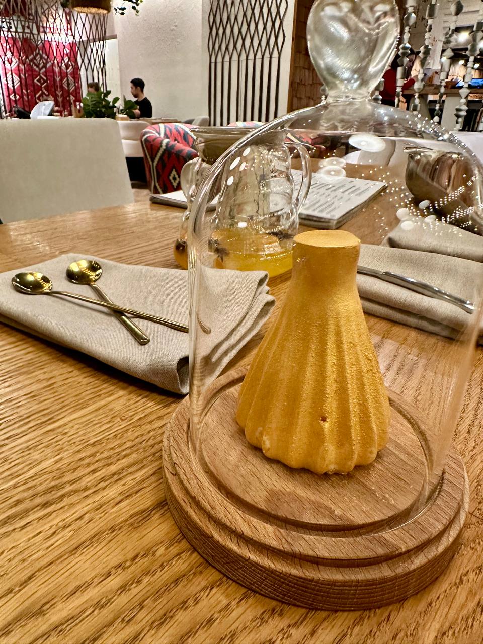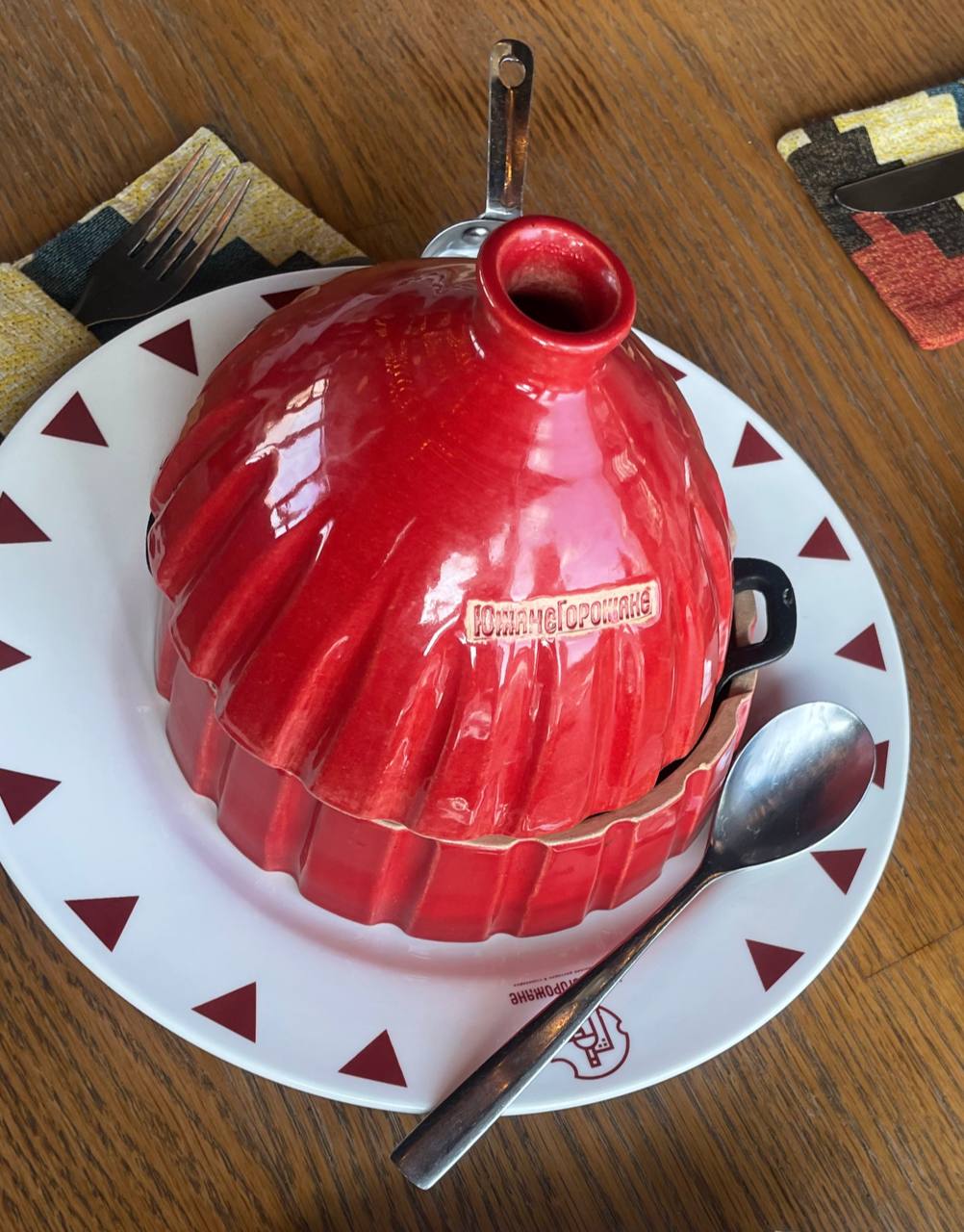 Приходя в новое заведение, я всегда прошу посоветовать фирменный десерт, которым гордится именно этот ресторан. Так поступила и в этот раз, когда пришла в "ЮжанеГорожане". Официант уточнил, хочу ли я что-то послаще или поспокойнее. От супер-сладкого я отказалась, и к моему удовольствию мне порекомендовали Золотую хинкаль. Это было очень кстати, потому что на входе в заведение установлена такая же в человеческий рост, что, конечно же, уже подогрело интерес. Подача шикарнейшая - хинкаль накрыта стеклянной колбой (видно на фото). Внутри мус из белого шоколада и ягодная начинка. Не уверена, что это лучшее сочетание, но в целом десерт очаровал. Спасибо за классный вечер!