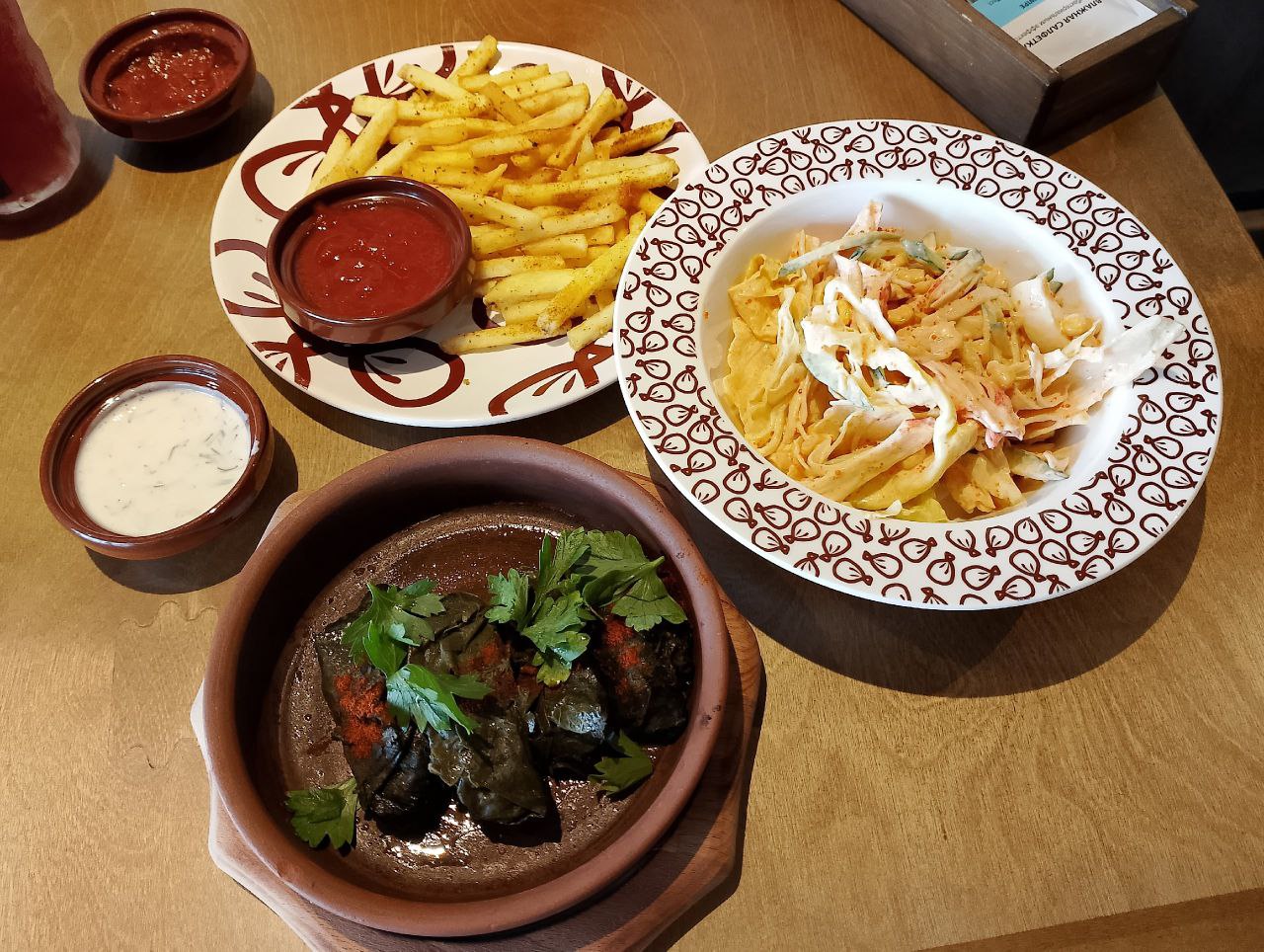 По мне самый недооценённый ресторан, сколько ни зайду - полупустой. Цены очень доступные. Красивый стильный интерьер в национальных колоритах. Брали дюжину хинкали ( ассорти из трёх видов) очень вкусные. Комплимент- лепёшка и соус.