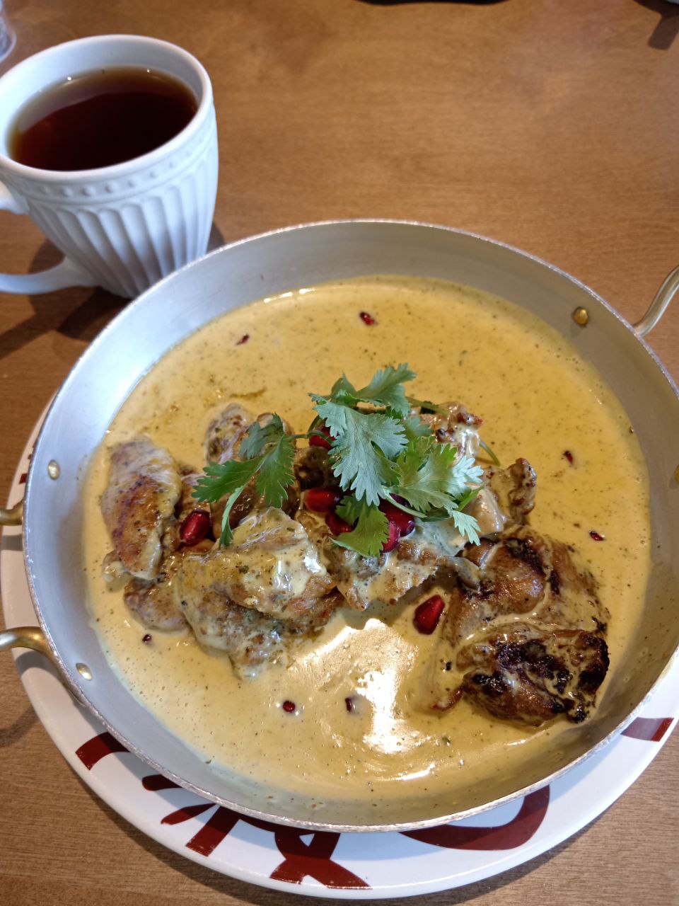 Рекомендую: Чкмерули из курицы. Очень нежная и сочная курица в пряном сливочном соусе. ~450₽