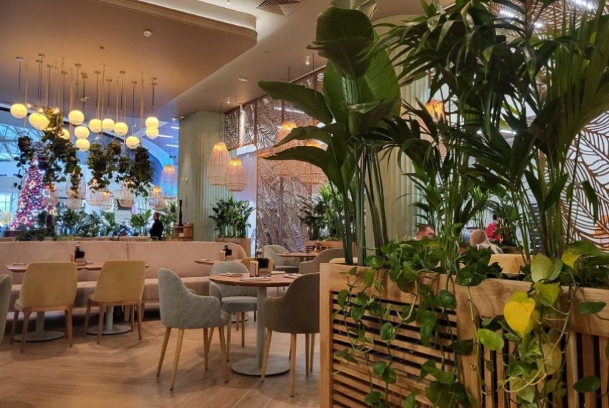 Итальянская кухня. Паста, пицца, морепродукты, десерты и не скучная барная карта. Теплая атмосфера с большим количеством зелени.