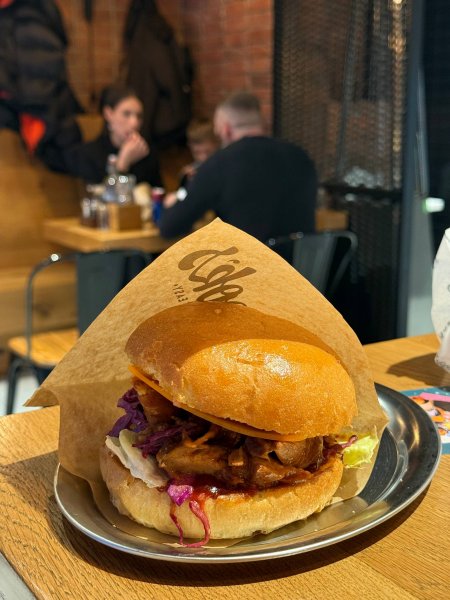 Я заказывала бургер с ребрышками, старшая дочь - с креветками. Ну очень сочные!