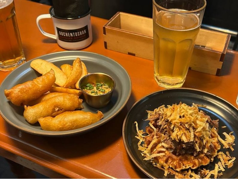 культовое уличное блюдо британской кухни: треска в хрустящем пивном кляре, который тает во рту. подается с картофельными дольками и соусом. божественно! но хотелось бы побольше порцию…