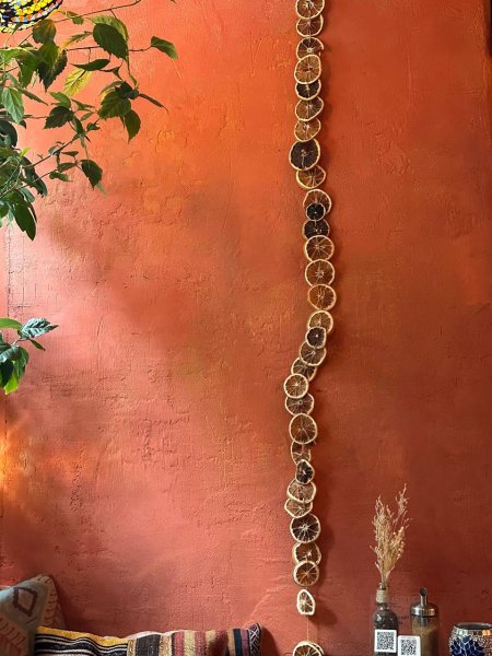 Атмосфера внутри царит какая-то восточная - оранжевый цвет стен, сухоцветы, соотвествующие узоры. Есть разделение на залы.