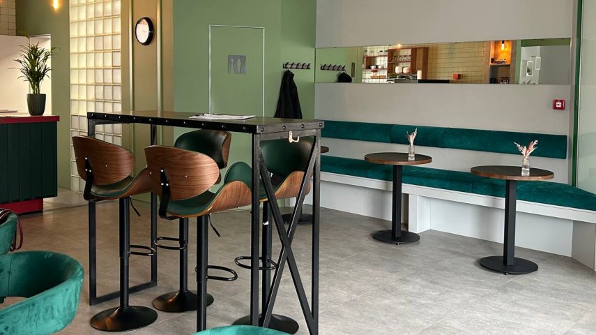 интерьер, к сожалению, потерял свою изюминку и теперь это посредственное заведение с зелеными бархатными стульями, искусственной зеленью (встречает она вас с улицы) и плохое освещение (днем сплошные потемки). но я пришла не дизайн оценивать