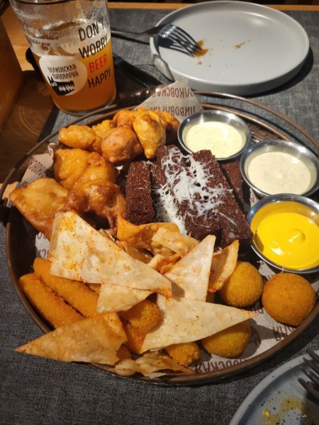 Из еды приятное впечатление оставили ребра BBQ, а также острые сырные шары и мясные пончики с говядиной. Из напитков мне понравился, как ни удивительно, сидр. В свое время пробовал много разного сидра в InCider, но здешний сидр понравился сбалансированностью вкуса. Он не такой яркий, как у некоторых крафтовых сидров, но и не такой сильный, как у сидров в продуктовой рознице. Также приятное впечатление произвел лимончелло, а также настойка на основе крыжовника. Для любителей экзотики есть настойка «том-ям».